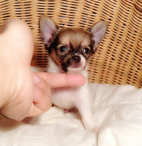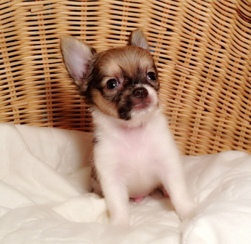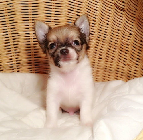 ขายลูกชิวาวาขนยาวเพศผู้ Fancy ขาวน้ำตาล