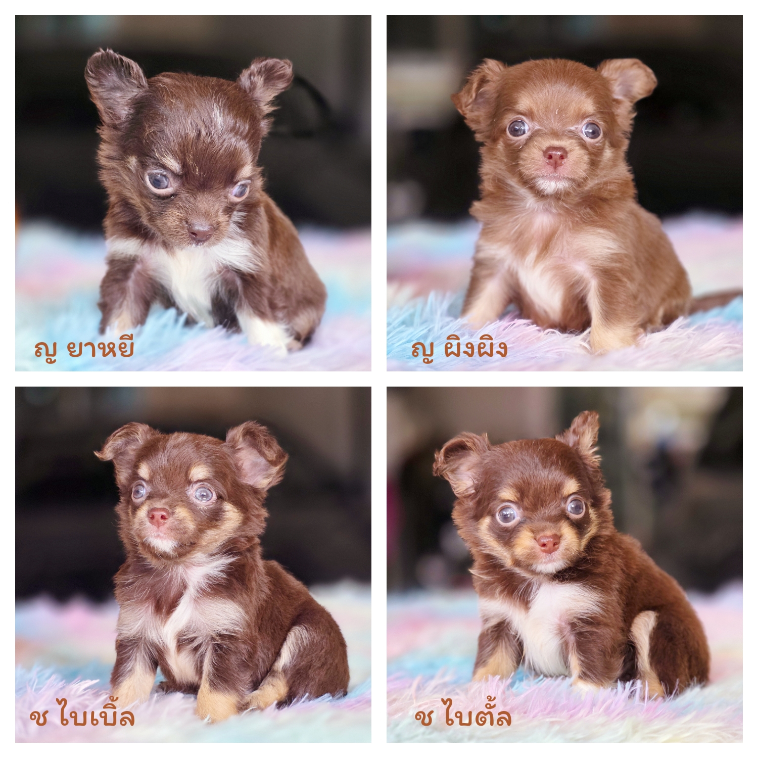 มีภาพอับเดทน้องหมาหลากหลายสายพันธุ์ทั้ง Chihuahua ทั้งขนสั้นและขนยาว Pomeranian หลากหลายสี ชิสุห์ไซด์ทอยส์สามสีสามตอน และ ปั๊กไซด์เล็กน่ารักฟอร์มสวยราคาไม่แพง