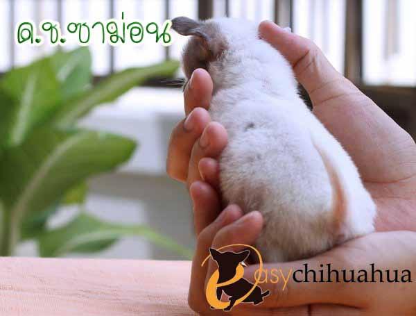 “ซาม่อน” ด.ช. ชิวาวาสายไต้หวัน สี ขาว-มาร์คน้ำตาลที่หน้า ขนสองชั้น