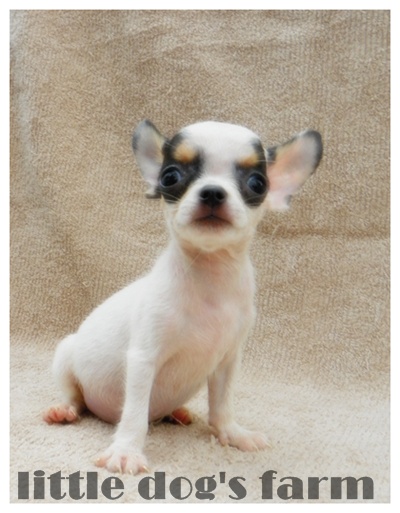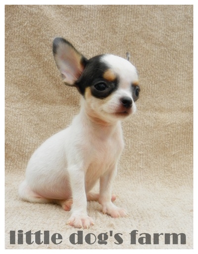 ชิวาวาเพศผู้ สีแฟนซีำขาว-ดำ ขนสั้นลักษณะเด่น มาร์คกิ้งหน้ากากแสกกลางแบ่งเท่า มีคิ้ว หัวโหนกโตหน้าหัก ตัวเล็ก