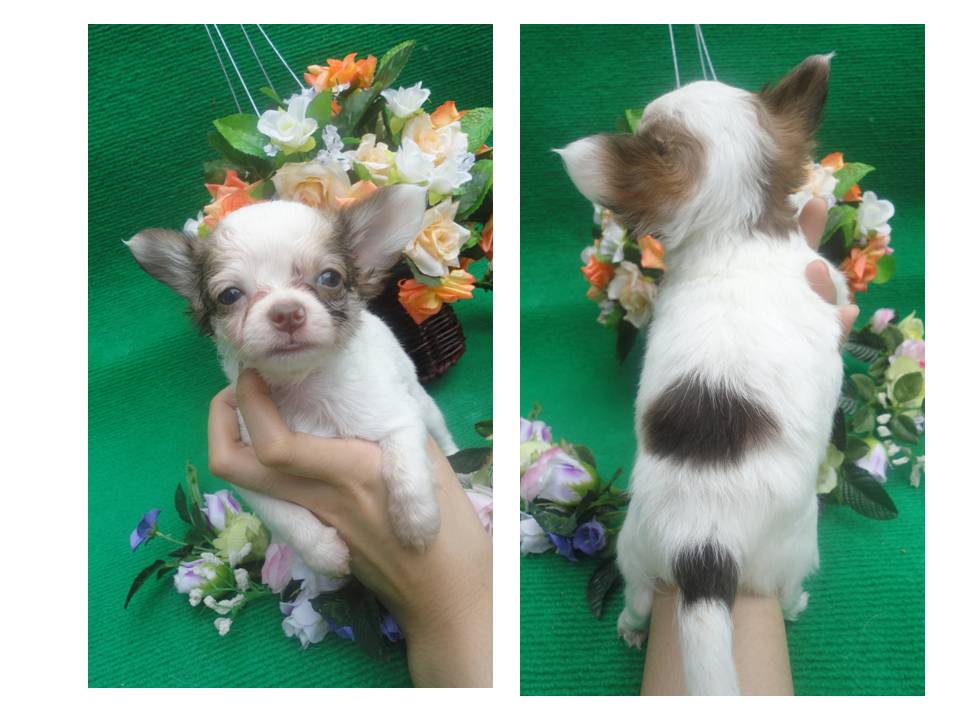 ชิวาวาขนยาวเพศผู้ สายช็อค สีแฟนซี ขาว-ช็อคอ่อน (ไซส์เล็ก) ชื่อว่า "กัปตัน" มีใบเพ็ดเรียบร้อยค่ะ sale12,000บาท ถูกใจจริงสามารถลดได้อีกนิดหน่อยค่ะ