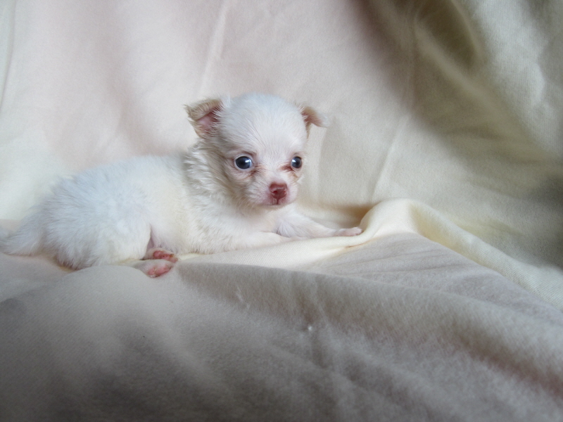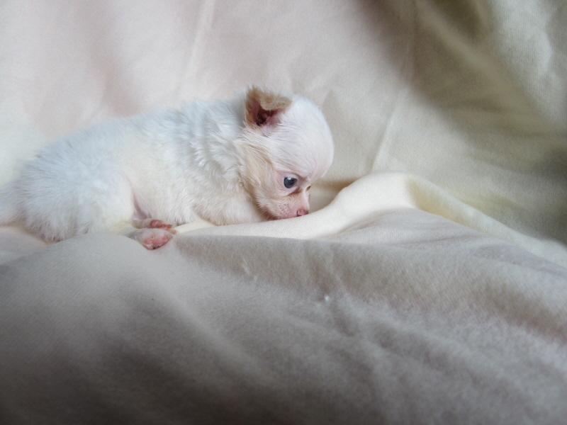 ชิวาวาสีขาวขนยาวเพศเมีย อายุ2เดือน ราคา 12000